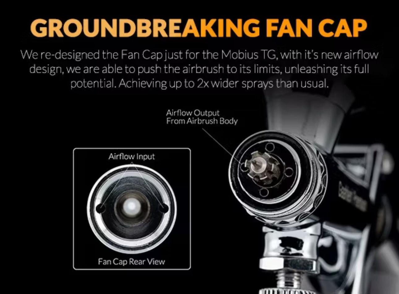 The Mobius TG comes with both 0.5mm fan cap and 0.5mm round cap. Providing unmatched efficiency for large-area coverage while maintaining the ability for detailed work, making it versatile for any creative scenario with just a switch.