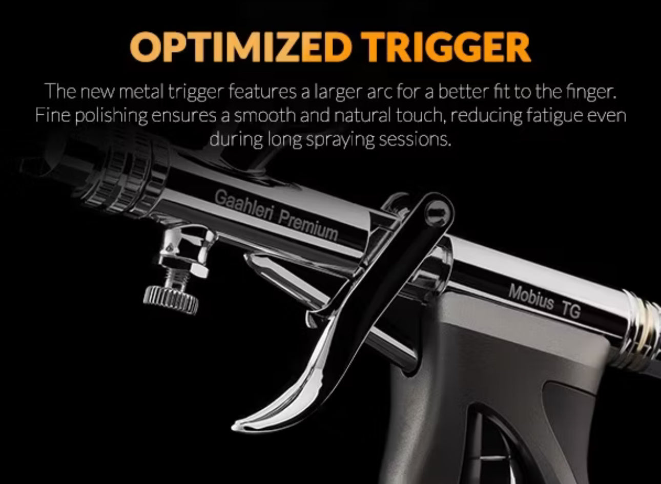The Mobius TG airbrush tail adopts the signature Möbius loop-style hollow design, enhancing both aesthetics and functionality. The expanded hollow section allows users to adjust trigger tension without removing the tail, providing a more convenient and personalized experience.