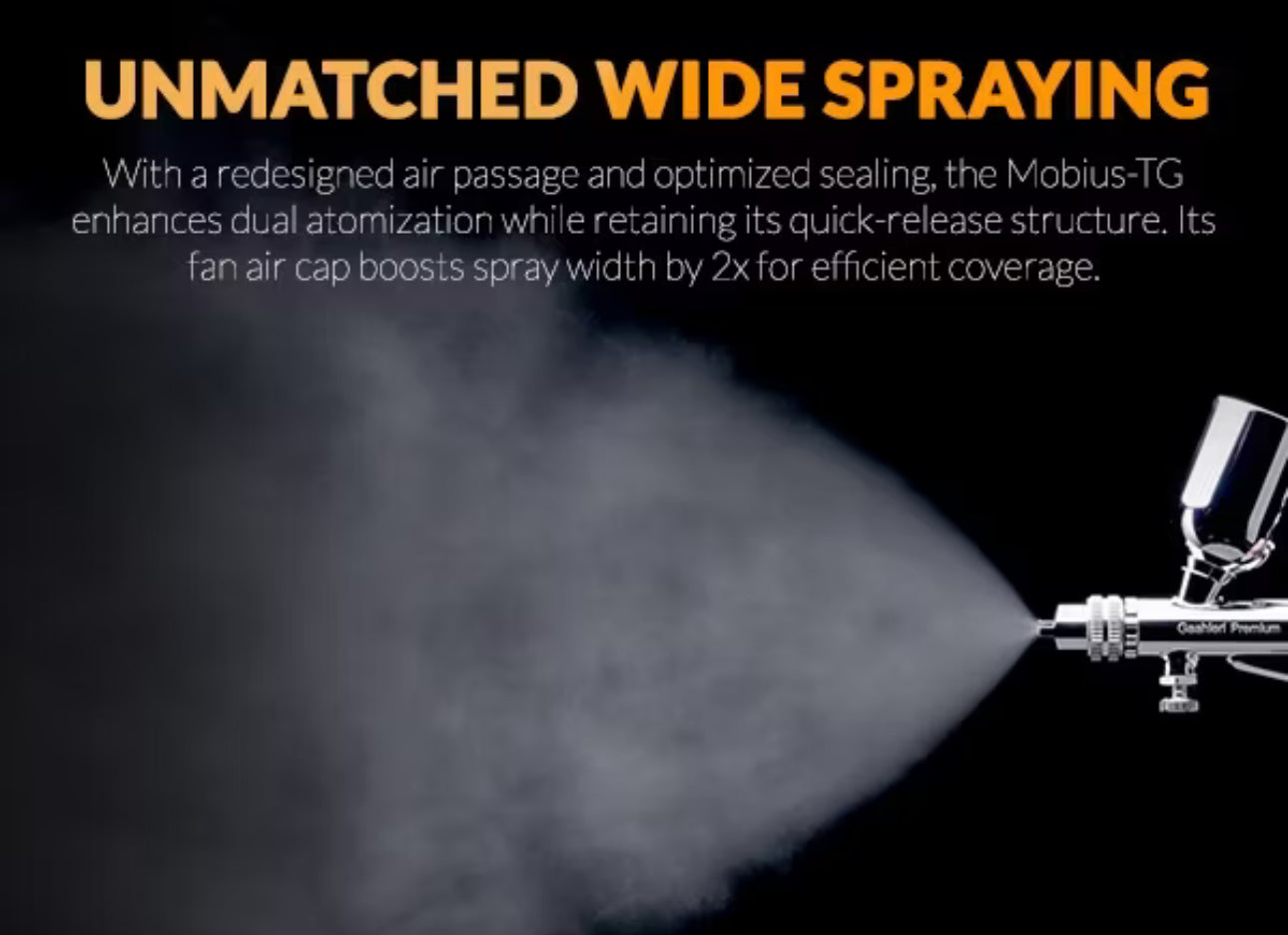 With a redesigned air passage and optimized sealing, the Mobius-TG enhances dual atomization while retaining its quick-release structure. Its fan air cap boosts spray width by 2x for efficient coverage.